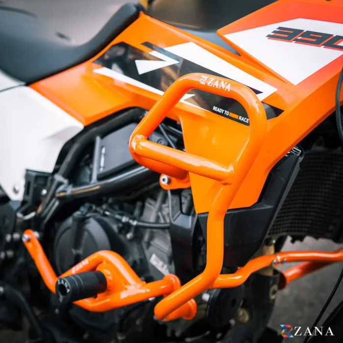Give your KTM the ultimate protection for highway touring and long-distance rides with Zana’s premium Touring Crash Guard Setup – now available in a striking KTM Orange finish. Designed as a complete upper + lower crash bar combo, this setup offers maximum safety, stability, and style for every ride.
