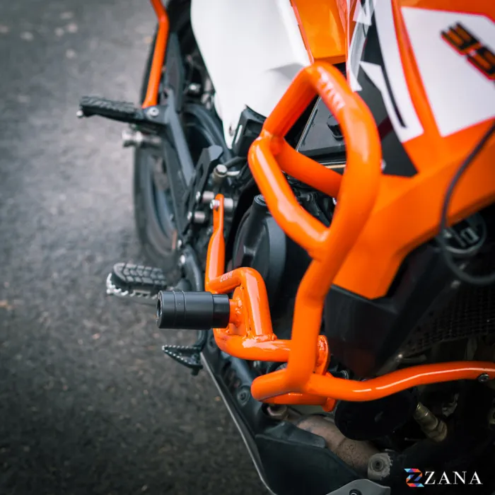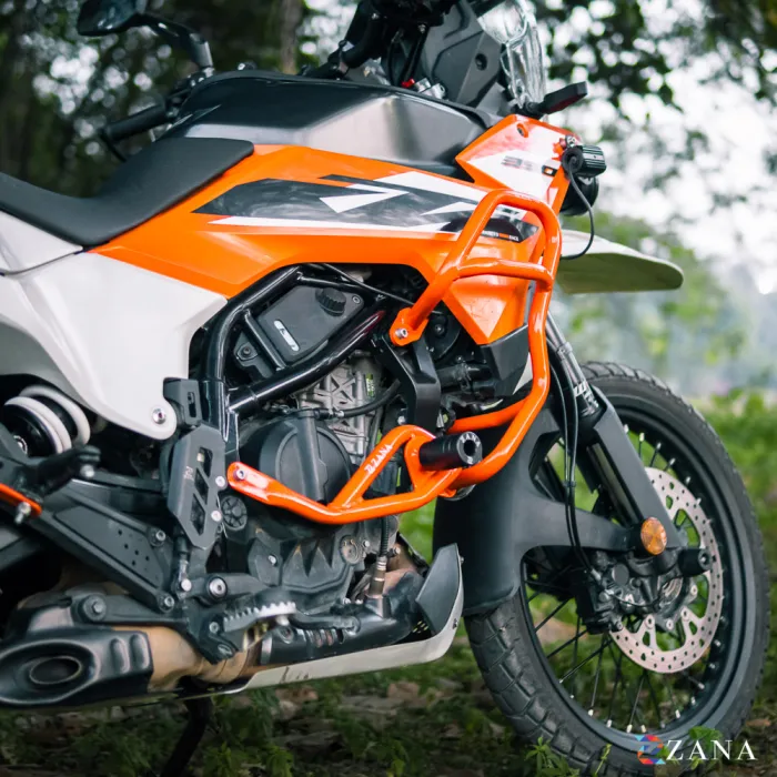 Give your KTM unbeatable protection with Zana’s Touring Crash Guard Setup – a complete upper + lower crash bar combo, now in bold KTM Orange. Built for touring, it delivers maximum safety, stability, and style on every ride.
