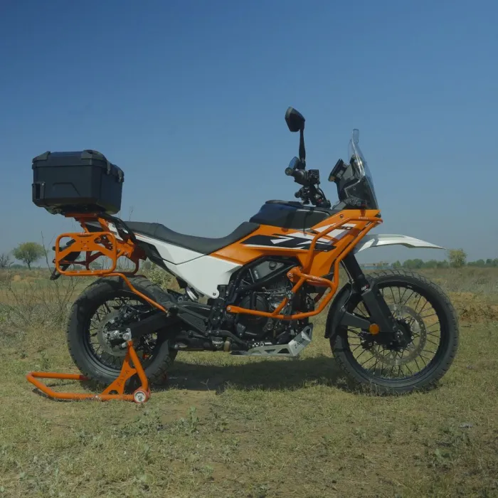 Inspired by our best-selling BMW 310 crash bar setup, this KTM crash bar design delivers full-body protection, making it an ideal choice for adventure riders and touring enthusiasts. The robust structure acts as a strong crash guard during low-speed impacts and tip-overs.