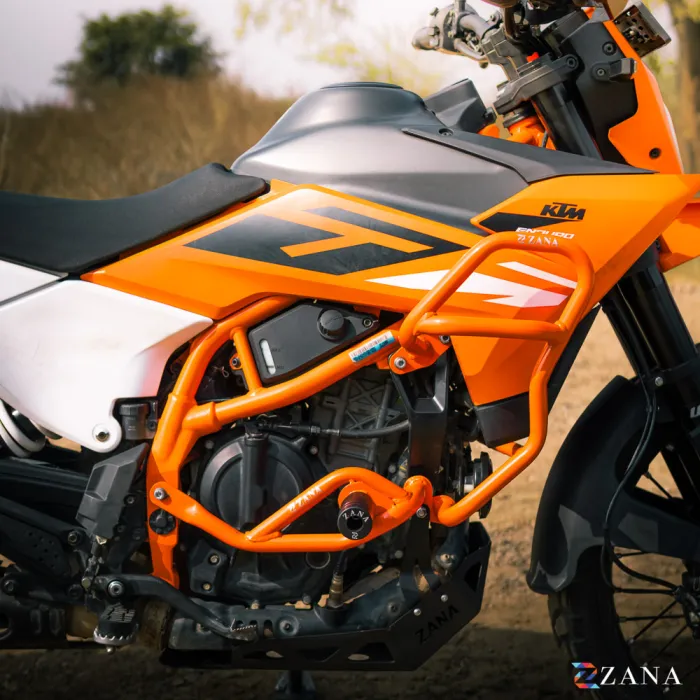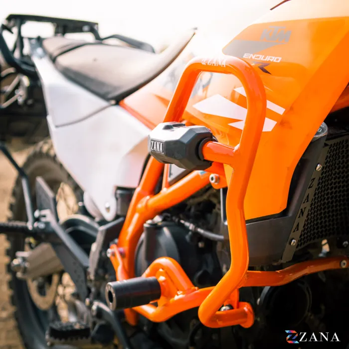 Zana brings you the ultimate Enduro-spec Crash Bars, engineered to shield your engine, fairing, and vital components from impacts, trail drops, and rough-terrain mishaps. Now also available in a bold KTM-style Orange finish.