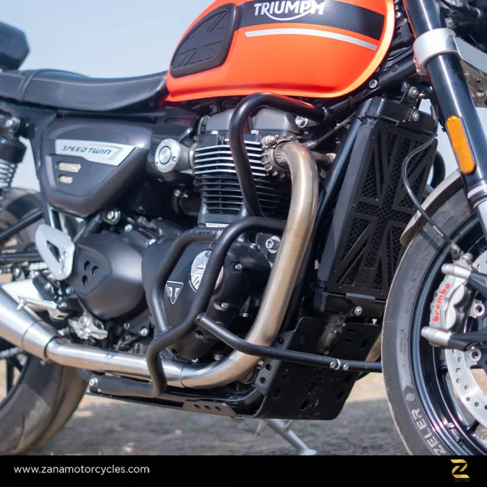 Engine Guard for Triumph Speed Twin is specifically designed to provide superior protection for your motorcycle’s lower engine area during off-road and road slides. Crafted from high-quality, 100% stainless steel, this guard ensures long-lasting durability and protection against rust, offering a lifetime guarantee against corrosion. The robust design is complemented by Z Pro polymer packs, which effectively absorb impact force, safeguarding your bike’s critical components during unforeseen incidents.