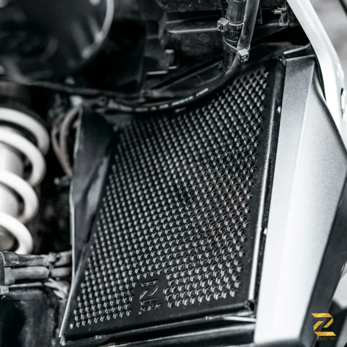 Protect and enhance your BMW R 1300 GS with the Zana Radiator Guard, designed for maximum protection and style. Featuring a textured matte black finish, this premium guard adds a sleek, rugged look to your bike's front end while offering heavy-duty protection.