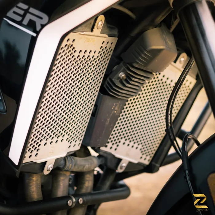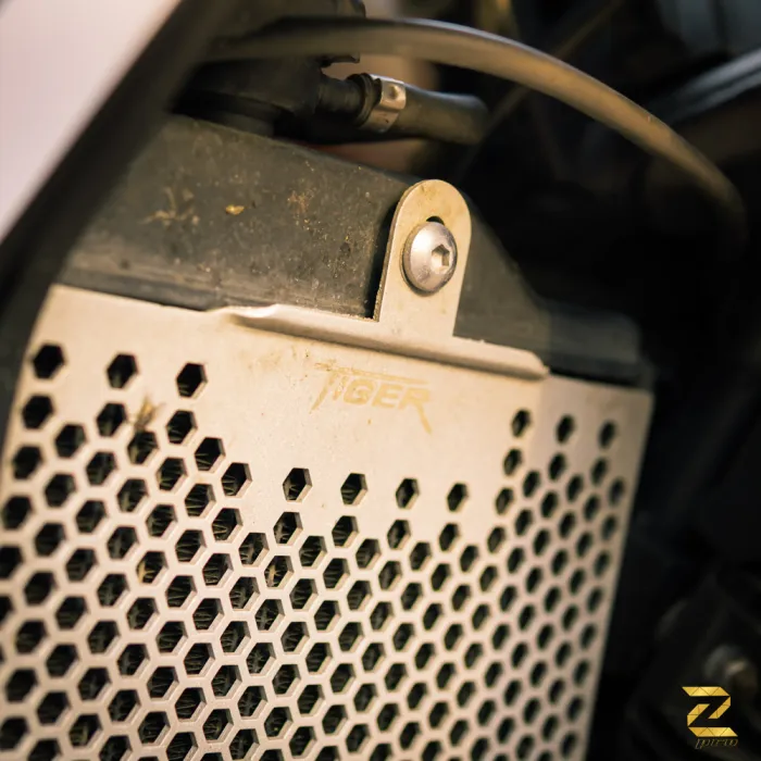 Protect your engine and maintain peak cooling performance with this Radiator Guard Honeycomb Silver for Triumph Tiger 900 GT—the perfect blend of durability, airflow efficiency, and premium styling.