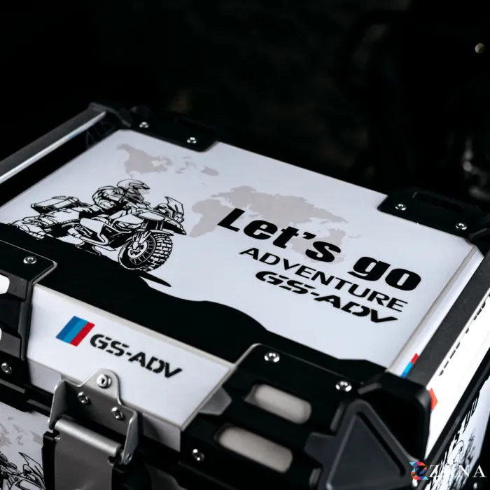 Sticker Aluminium Top Box 45 Ltr L-Flat Silver With Back Rest Cushion is a premium storage solution crafted for durability and style. Its robust all-aluminium construction—covering both the box base and top cover—ensures rust-proof reliability, backed by a lifetime warranty against rusting. This top box, designed to integrate seamlessly with the Zana Top Rack, is equipped with a heavy-duty mounting plate suitable for universal racks, maximizing versatility for riders. Additionally, the box features a copy-proof stainless steel lock and an inner waterproof liner, protecting your belongings from moisture and wear.