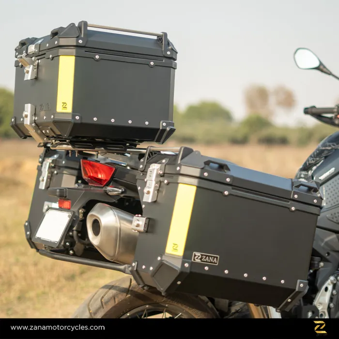 Upgrade your BMW F 850 GS/GSA with ZANA’s premium Tapered Panniers 46L (RHS) and 36L (LHS) — the ultimate solution for motorcycle luggage and long-distance adventure touring. Built for endurance and performance, these BMW panniers are crafted from heavy-duty aluminium with rust-free stainless steel fittings, offering a perfect blend of ruggedness, capacity, and style — with a unique tapered design on the left pannier for seamless integration around the stock silencer. The setup is designed after extensive R&D to ensure minimum space between the bike and panniers without compromising on functionality.