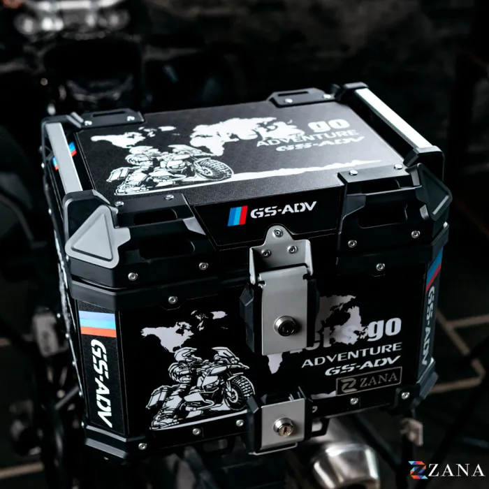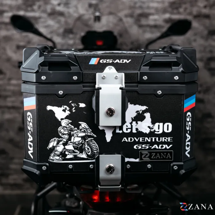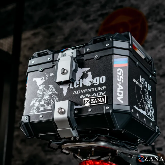 Designed with an inner waterproof liner, it keeps contents dry even in extreme conditions and is easy to clean with mild detergent. The box includes heavy-duty armor corner protectors that guard against accidental bumps, ensuring longevity and resilience. A heavy-duty mounting plate is also included, compatible exclusively with ZANA top racks made for aluminum boxes, providing a perfect fit and enhanced stability for your motorcycle. This model supports a load capacity of up to 7kg, balancing spacious storage with safe weight distribution.