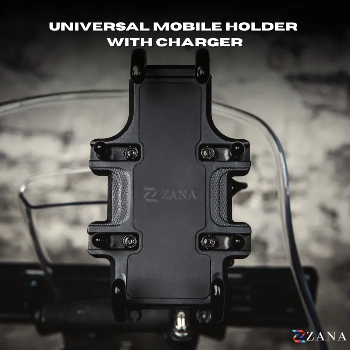 Zana Universal Mobile Holder with Charger BLU is the ultimate solution for riders who need both security and convenience on the road. Designed for universal compatibility, this innovative mobile holder comes with an integrated charger, ensuring that your smartphone remains powered throughout your ride. The adjustable width allows it to fit a wide range of mobile devices, providing a secure and firm grip, no matter the phone size.